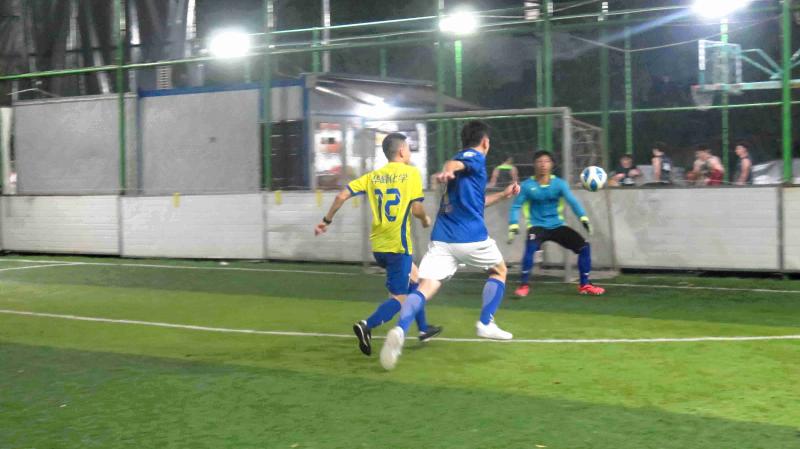 決賽當(dāng)晚,華峰原子隊和華峰千億隊激烈爭奪冠亞軍,雙方強(qiáng)強(qiáng)對抗。比賽一開始,雙方就進(jìn)行了快速的攻防輪換,開賽兩分鐘,千億隊前鋒王德平繞開防守隊員,一記弧頂大力抽射,卻被守門員托出橫梁;隨后,千億隊主力黃德雷、黃杰新、胡力為等隊員極具威脅的射門不下五次,均被原子隊神奇門將章宦國一一化解。上半場,雙方球員一攻一守,戰(zhàn)況焦灼,雙方戰(zhàn)平。進(jìn)入下半場,原子隊改變戰(zhàn)術(shù),主力球員劉亞輝和溫作楊加強(qiáng)遠(yuǎn)距離射門,并頻頻攻入對方禁區(qū)。在比賽最后1分多鐘,原子隊獲得邊線球機(jī)會,劉亞輝和溫作楊完成戰(zhàn)術(shù)配合后,劉亞輝秒傳禁區(qū)邊埋伏的林劍余,林劍余射出一腳重炮,足球劃過門將身前,直撲球門左下角進(jìn)球。最后,原子隊守住成果,以一球優(yōu)勢奪得冠軍。