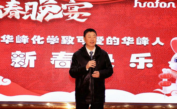 隨著快閃節(jié)目擊鼓開場,晚宴正式拉開序幕。主持人吳克和韋繼平用重慶話開場主持,俏皮的言語頓時活躍了氣氛。隨后,公司總經(jīng)理朱炫相發(fā)表了熱情洋溢的新春致辭,來自韓國的他,在表達對員工真誠感謝的同時,也希望在座的員工,新的一年,再次一起奮斗,一起圓夢,實現(xiàn)公司新一年大發(fā)展。同時,公司董事長楊從登,以溫馨的言語,回顧了自己二十年前,從江蘇來瑞安工作的經(jīng)歷,對自己春節(jié)期間留瑞過年,感受到同事間如同家人般的那份關心,久久不能忘懷。董事長也對來自五湖四海的在座員工,給予了新年祝福,并鼓勵大家在新的一年,創(chuàng)造華峰發(fā)展輝煌的業(yè)績。