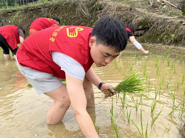 在辛勤的勞作過(guò)程中,志愿者們認(rèn)真地聽(tīng)取農(nóng)民伯伯的指導(dǎo),仔細(xì)地觀察土壤的松散程度,調(diào)整合適的深度、間隔,將小苗插入泥土中,并輕輕地按壓,循著一條條直線,平行插秧,一株又一株的嫩綠苗兒頓時(shí)展現(xiàn)在大家眼前。他們一個(gè)個(gè)喜笑顏開(kāi),共同完成此次插秧勞動(dòng)。