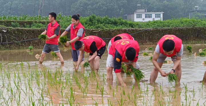 為了更好地發(fā)揮公司志愿者協(xié)會(huì)的社會(huì)責(zé)任,以積極的姿態(tài)融入到社會(huì)發(fā)展中,增強(qiáng)員工的集體凝聚力和團(tuán)隊(duì)合作力,5月5日,公司志愿者協(xié)會(huì)組織了“志愿服務(wù)下田間,助農(nóng)插秧促春耕”活動(dòng),得到了廣大志愿者的積極響應(yīng)和參與。上午八點(diǎn)半,公司志愿者協(xié)會(huì)的成員們?cè)缭绲貋?lái)到了位于涪陵區(qū)白濤鎮(zhèn)山窩鄉(xiāng)的水源村,到達(dá)待插秧的田地。在農(nóng)民伯伯的指導(dǎo)下,志愿者們分成小組,一起有條不紊地交替著在田間開(kāi)展耕種勞動(dòng)。大家身著紅色的志愿者馬甲,蓬勃的生機(jī)與村莊間的田野交織在一起,展現(xiàn)出了朝氣蓬勃的風(fēng)采。