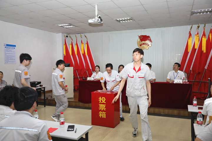 在激昂的《中國(guó)共青團(tuán)團(tuán)歌》中,大會(huì)拉開(kāi)序幕。會(huì)議開(kāi)始,華峰黨委委員、團(tuán)委書(shū)記王升同志宣讀上級(jí)團(tuán)委關(guān)于本次會(huì)議召開(kāi)的批復(fù)文件。公司團(tuán)委書(shū)記林勇代表第五屆團(tuán)委向大會(huì)作工作報(bào)告,各位團(tuán)員代表認(rèn)真聆聽(tīng),表決通過(guò)工作報(bào)告。會(huì)上,大會(huì)通過(guò)《選舉辦法》、第六屆團(tuán)委委員候選人建議名單和監(jiān)票人、計(jì)票人名單。