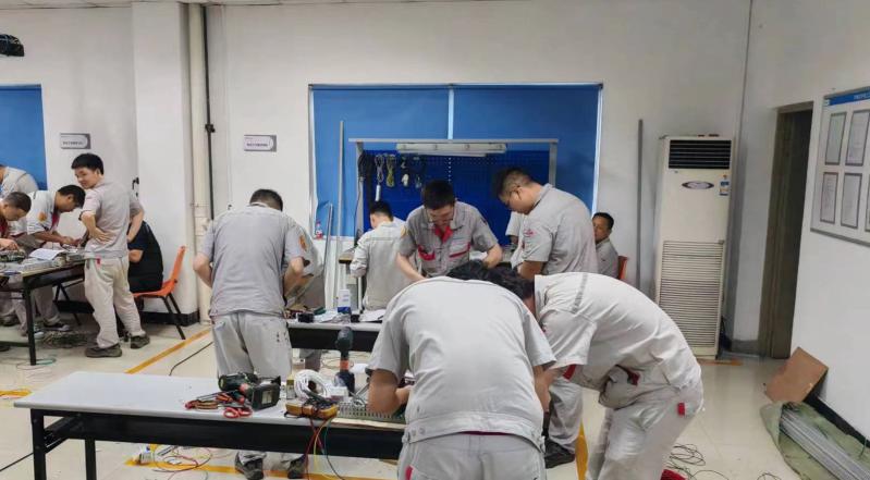 本次擂臺比武由理論考試和實(shí)操作業(yè)兩部分組成,參賽選手需在規(guī)定時(shí)間內(nèi)完成電路圖繪制和接線。擂臺賽現(xiàn)場,兩人一組,選手們先對材料進(jìn)行檢查,確保無誤后,便迅速進(jìn)入爭分奪秒的比賽狀態(tài)。機(jī)電Z王領(lǐng)和朱日樹組合在理論環(huán)節(jié)穩(wěn)定發(fā)揮。實(shí)操環(huán)節(jié)中,他們相互配合,迅速進(jìn)行安裝調(diào)試,并反復(fù)檢查……兩人憑借嫻熟的技能,穩(wěn)扎穩(wěn)打,最終奪得首屆電工“金牌擂主”稱號。參賽的其余選手也不甘示弱,他們沉著冷靜地在接線板上“排兵布陣”,操作規(guī)范、動(dòng)作嫻熟,紛紛展現(xiàn)著華峰化學(xué)電工優(yōu)秀的實(shí)操素養(yǎng)。