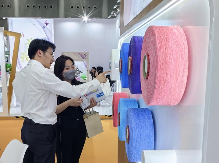 對于近期比較熱門的細旦衛(wèi)材專用氨綸,得益于公司開發(fā)成熟、可批量推廣的核心優(yōu)勢,展會上眾多一線品牌客戶紛紛前來交流,有多家衛(wèi)材客戶達成試用意愿。同時,不少客戶對新推出的炫彩氨綸展品很感興趣,在現(xiàn)場取樣后表示,有意愿后期研發(fā)并確認效果。此外,衛(wèi)材大絲卷包裝,可根據(jù)客戶需求對色彩和規(guī)格進行定制,深受當天前來洽談的紙尿褲生產廠商親睞。