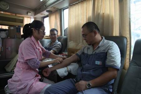 獻(xiàn)血辦的采血車(chē)一到,填表、驗(yàn)血、體檢、抽血等隨即有序展開(kāi)。徐寧副總經(jīng)理等公司高管帶頭參與,用自己的實(shí)際行動(dòng)展現(xiàn)了他們的無(wú)私奉獻(xiàn)。值得一提的是,來(lái)自機(jī)修C班組會(huì)暈血的薛介鋒同志克服自己的心理矛盾毅然參加獻(xiàn)血;來(lái)自電儀E班組的楊波同志已經(jīng)先后有八次參加義務(wù)獻(xiàn)血經(jīng)歷,奉獻(xiàn)了2300ML的熱血。所有獻(xiàn)血者在拔除針頭后,都放棄了休息,立即奔赴各自的工作崗位,繼續(xù)投入到緊張的工作中。